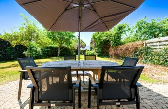 A l?arrière, côté jardin, vous avez la cuisine entièrement équipée, une salle à manger séparée, un salon avec feu ouvert et à l?étage, une chambre, un hall de nuit pouvant servir de dressing et une pièce complémentaire aménageable en sdb.