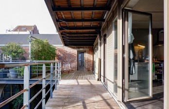 BXL Canal ? Proximité Place de la Duchesse du Brabant, au sein d?un projet immobilier de 2005/08, Loft traversant NE/SO au design brutaliste, prolongé d'une terrasse dinatoire exposée SO. Il profite d?une vue privilégiée sur la "Brasserie Carlier", superbe bâtiment industriel début XXè réhabilité en lofts, discrètement niché en intérieur d?îlot, offrant un cadre particulièrement paisible.