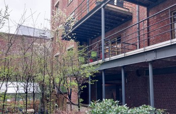 Après avoir traversé le jardin intérieur de la Brasserie, vous serez accueilli au 1er étage par un patio végétalisé sur lequel s'ouvre l'entrée de ce Loft aux murs & voussettes d'origines en briques apparentes et au sol revêtu de parquet.