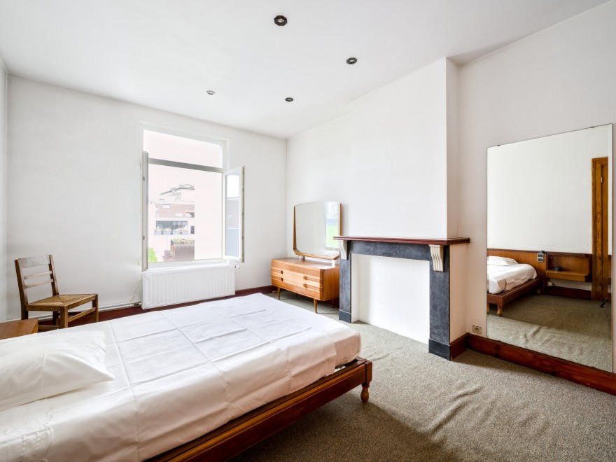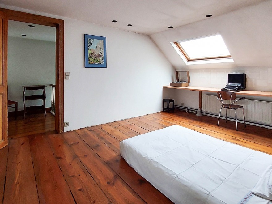 CHARTREUX - Maison de maître unifamiliale avec dépendance offrant un potentiel immobilier significatif pour une grande famille/investisseurs/Coliving. Implantée sur un terrain de 1a70ca le long d'une rue en sens unique, cette maison de maître R+3 ±319m² et sa dépendance arrière R+2 ±60m² encadrent un jardin de ville ±50m². Derrière sa façade de 6m elle séduit par sa douce atmosphère familiale, ses volumes généreux, sa luminosité, ses 6 chambres, son vaste grenier, ses 2 bureaux et son joli jardin traversant vers la charmante maison/atelier en intérieur d?îlot. Le hall d'entrée dessert un vaste living, une salle à manger, une cuisine prolongée d'une terrasse surplombant le jardin, un vestiaire avec WC et donne l'accès au jardin. Répartie sur les 3 niveaux supérieurs, la partie nuit comprend 5CH de ±18m², 2 bureaux ± 9m²(SDB?), un grenier + mezzanine ±35m²(CH?), une SdB baignée de lumière et un WC. Au sous-sol sont répartis une buanderie, une réserve, un atelier et une cave à vin. La maison principale est très saine et de suite habitable, mais nécessite une remise aux normes énergétiques - PEB G. La maison arrière est à rénover entièrement exceptée sa toiture. Sa localisation stratégique en fait un choix idéal pour ceux recherchant le plaisir de vivre en plein c?ur de la culture Bruxelloise avec mobilité grâce à son offre de transports multimodal. À saisir rapidement. Publicité non contractuelle n'engageant d'aucune façon nos commettants - Aline +32 495 702 142